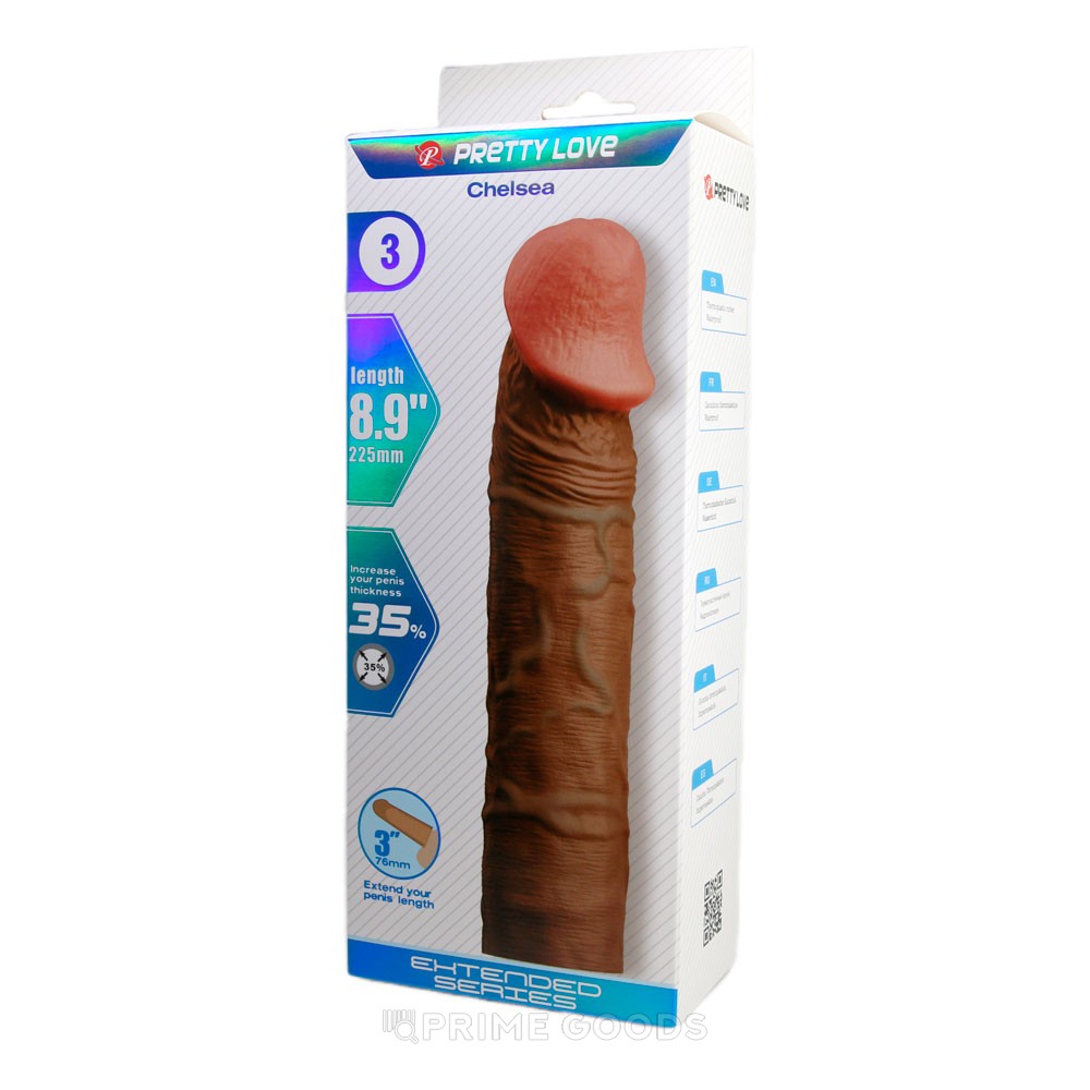 Насадка на пенис Chelsea длиной 22,5 см, коричневая — аксессуар для увеличения длины и объёма, созданный для более насыщенного и плотного контакта. Натуральный коричневый оттенок и анатомически выверенная форма обеспечивают естественный внешний вид и комфорт во время использования.