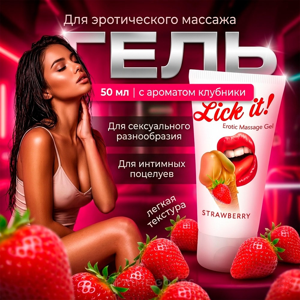 Массажный гель Lick It! с ароматом клубники, 50 мл