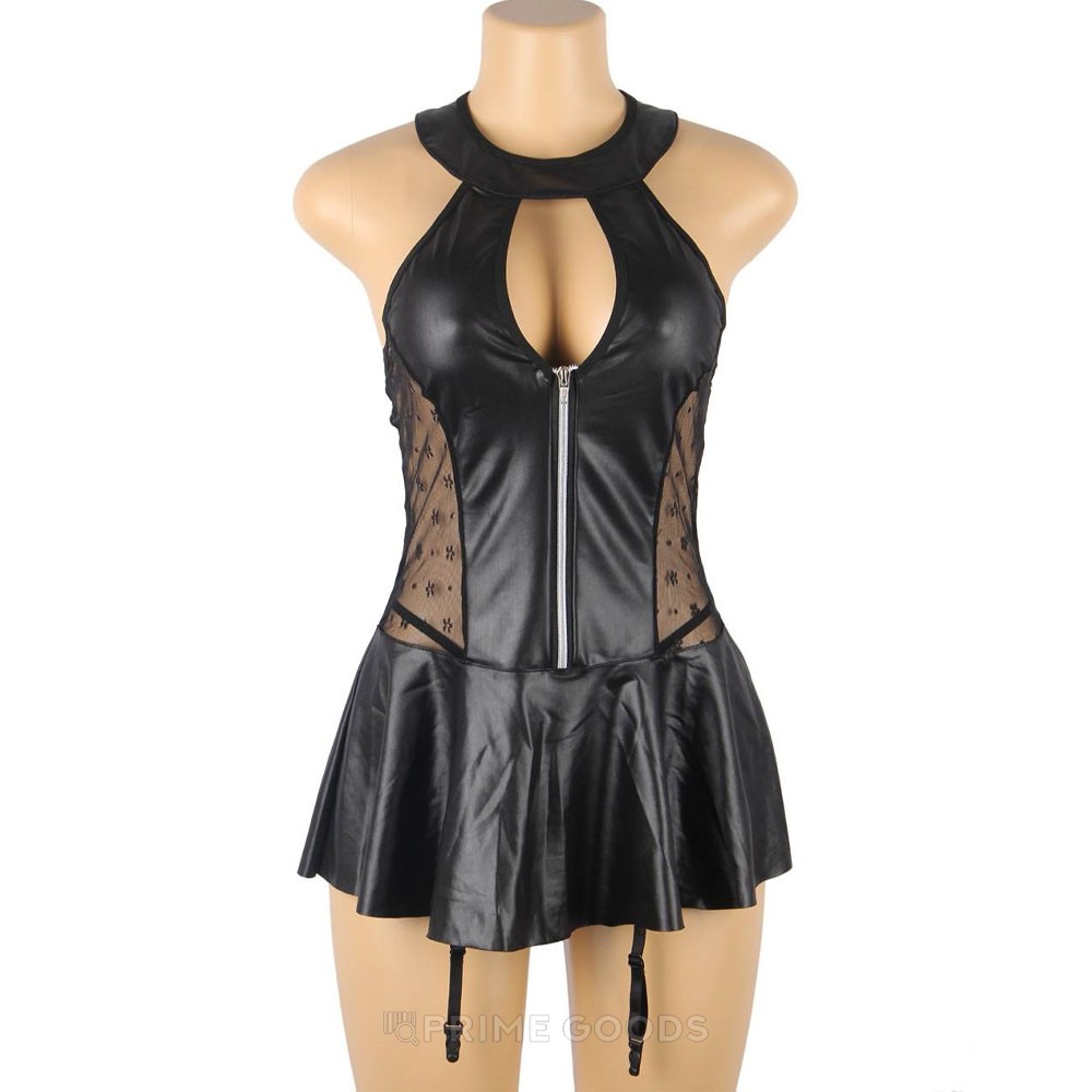 Кожаное платье со шнуровкой и юбкой-воланом Ohyeah +стринги, XL-2XL