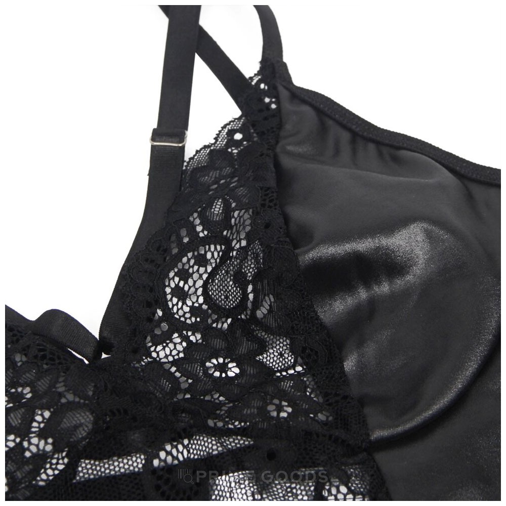 Кожаное платье с кружевом и стрепами Ohyeah Sexy Black +стринги, XS-S