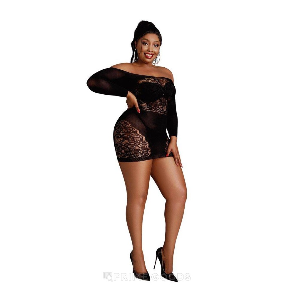 Сексуальное платье-сетка с кружевными вставками от Moonlight черное (plus size)