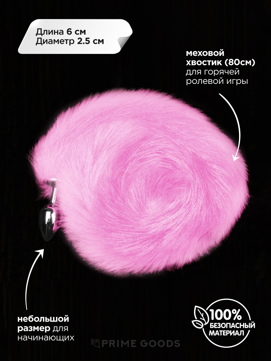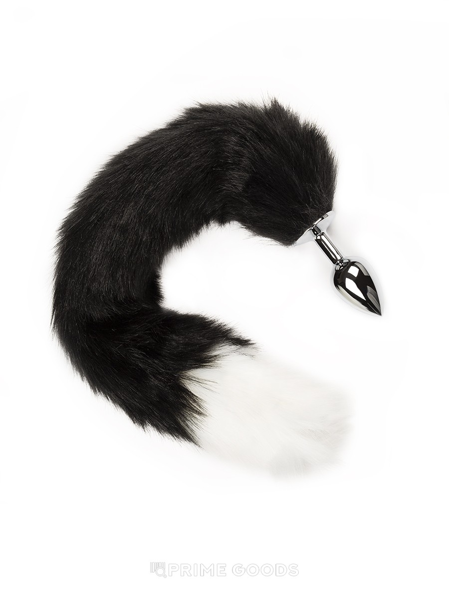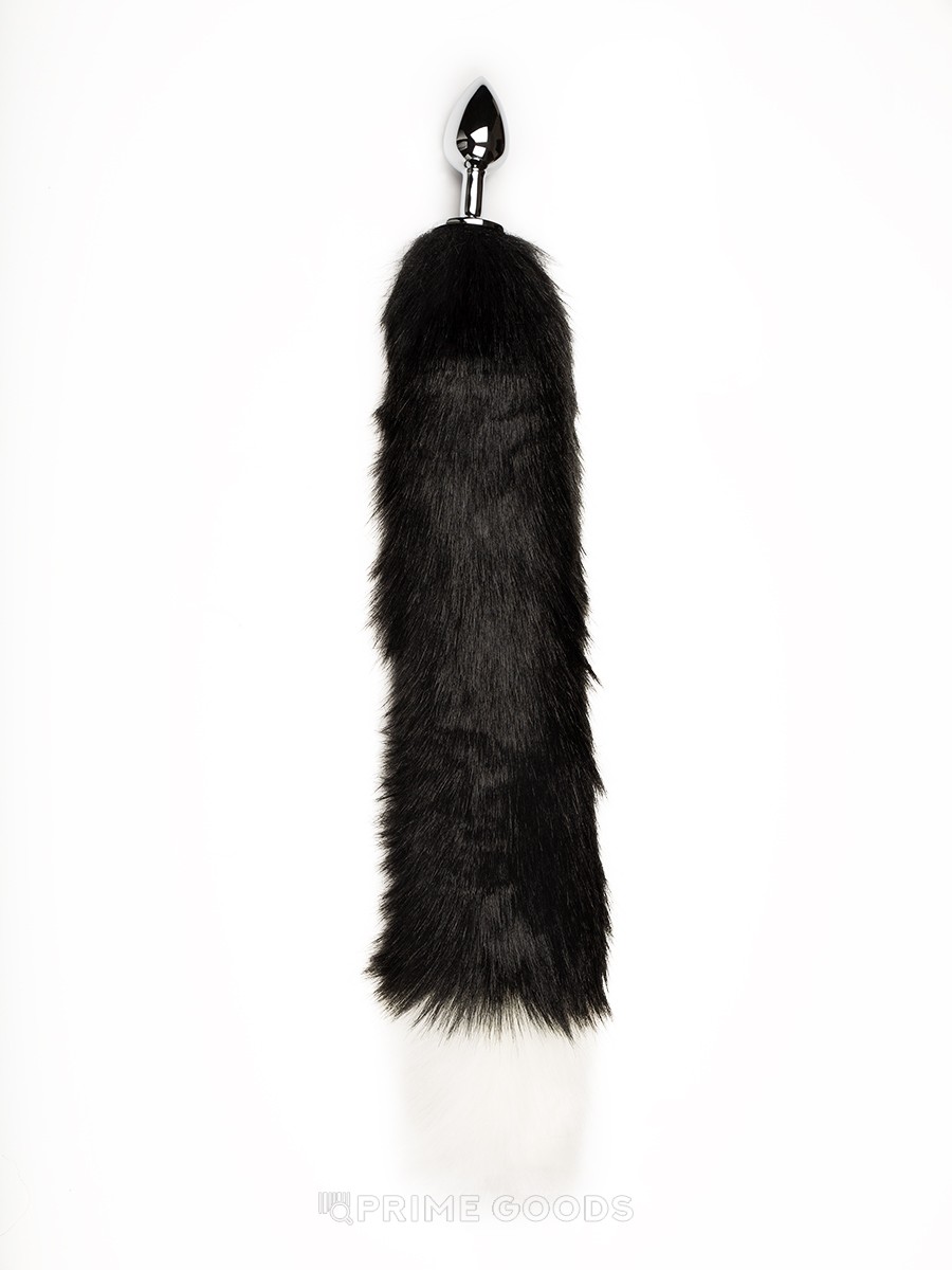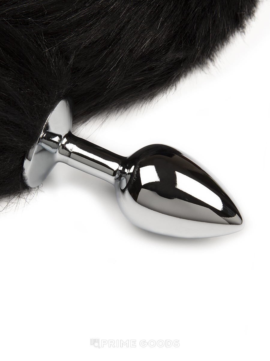 Серебристая анальная пробка с хвостом - Пикантные Штучки, 6 см Черный