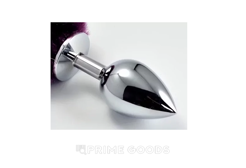 Серебряный анальный плаг с фиолетовым хвостиком