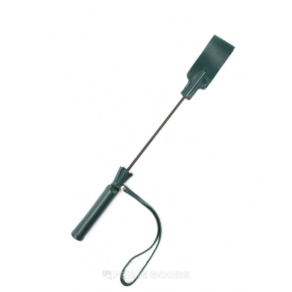 Рукоятка стека из натуральной кожи изумрудного цвета, на конце девайса расположен кожаный шлепок размером 8х3,5 см.