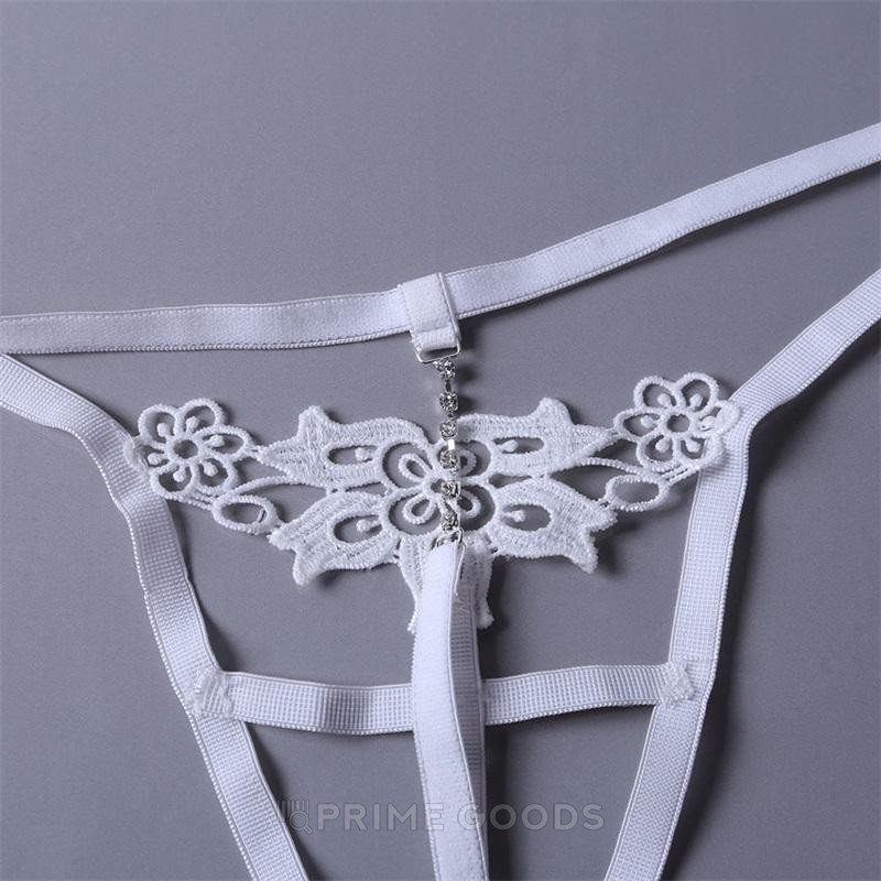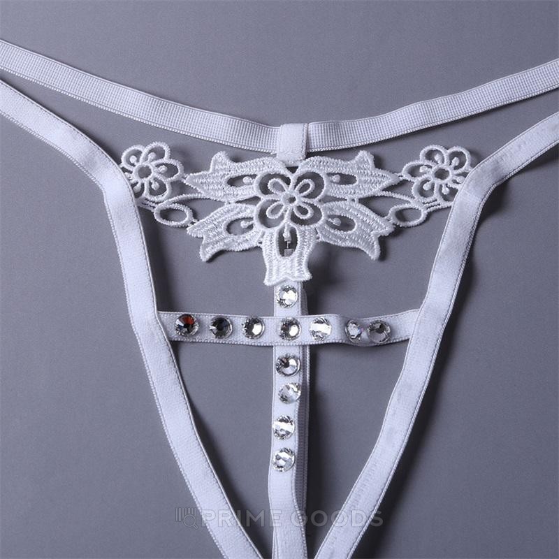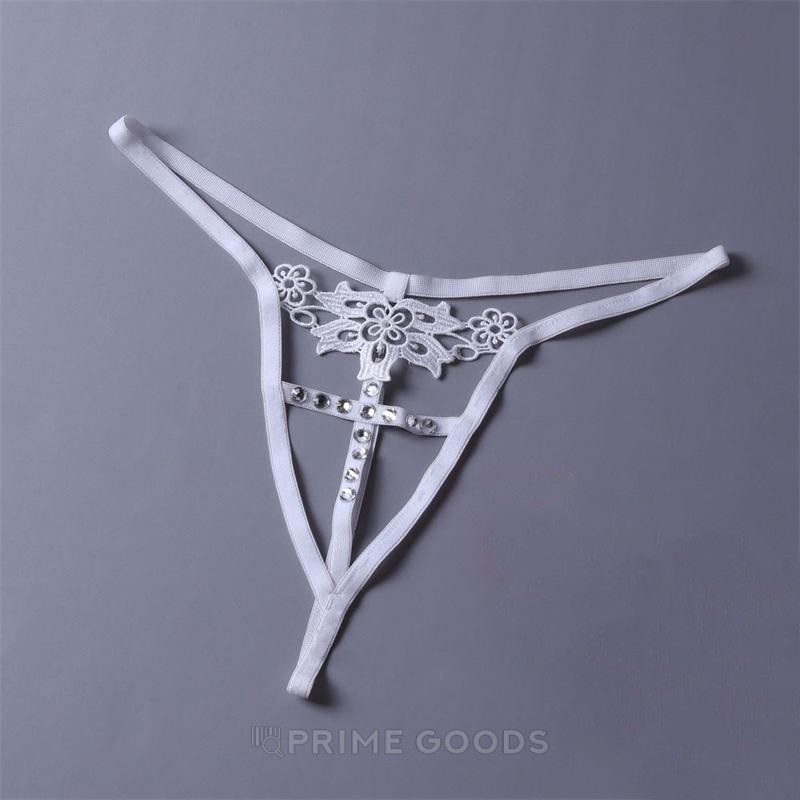 Стринги со стразами и кружевом, белые