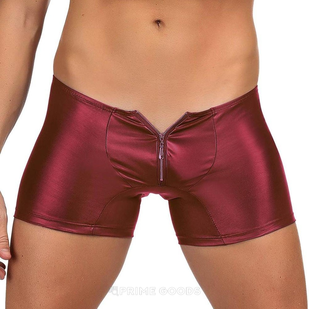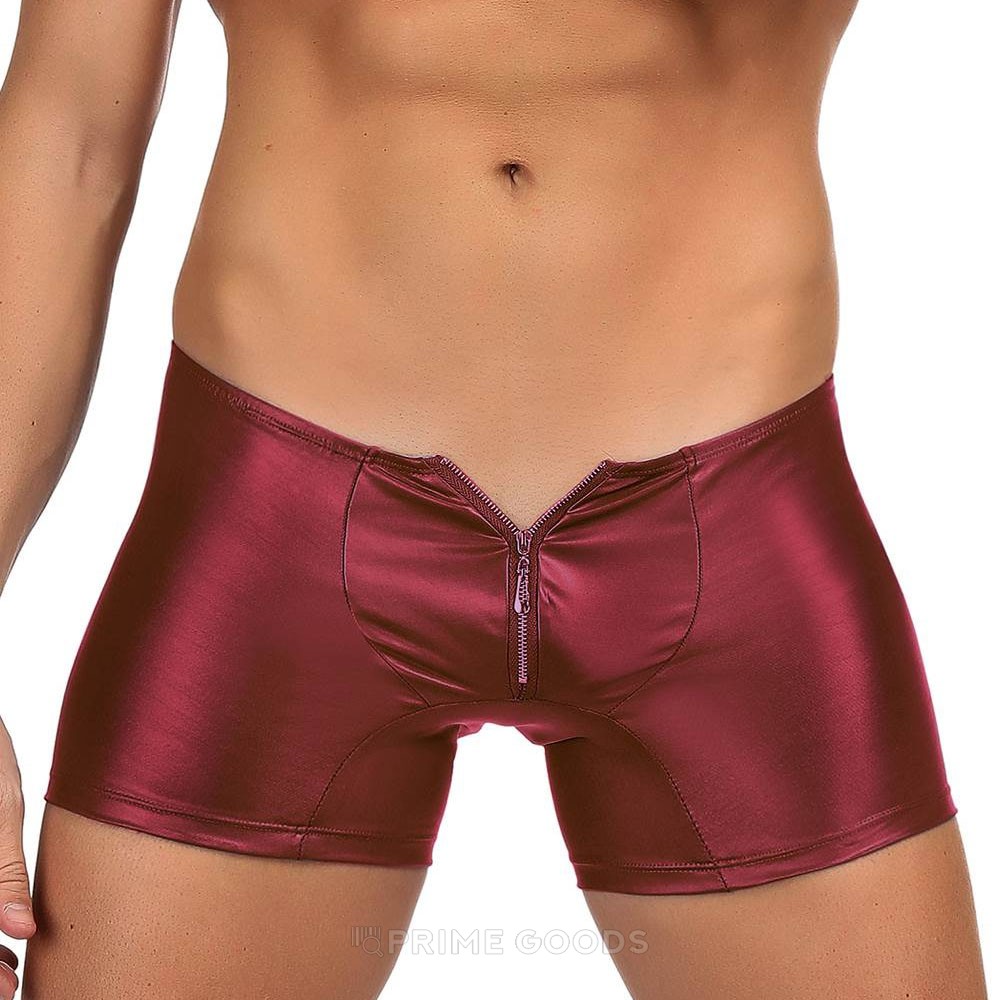 Кожаные трусы мужские на молнии Ohyeah "Хипсы" бордовые, S