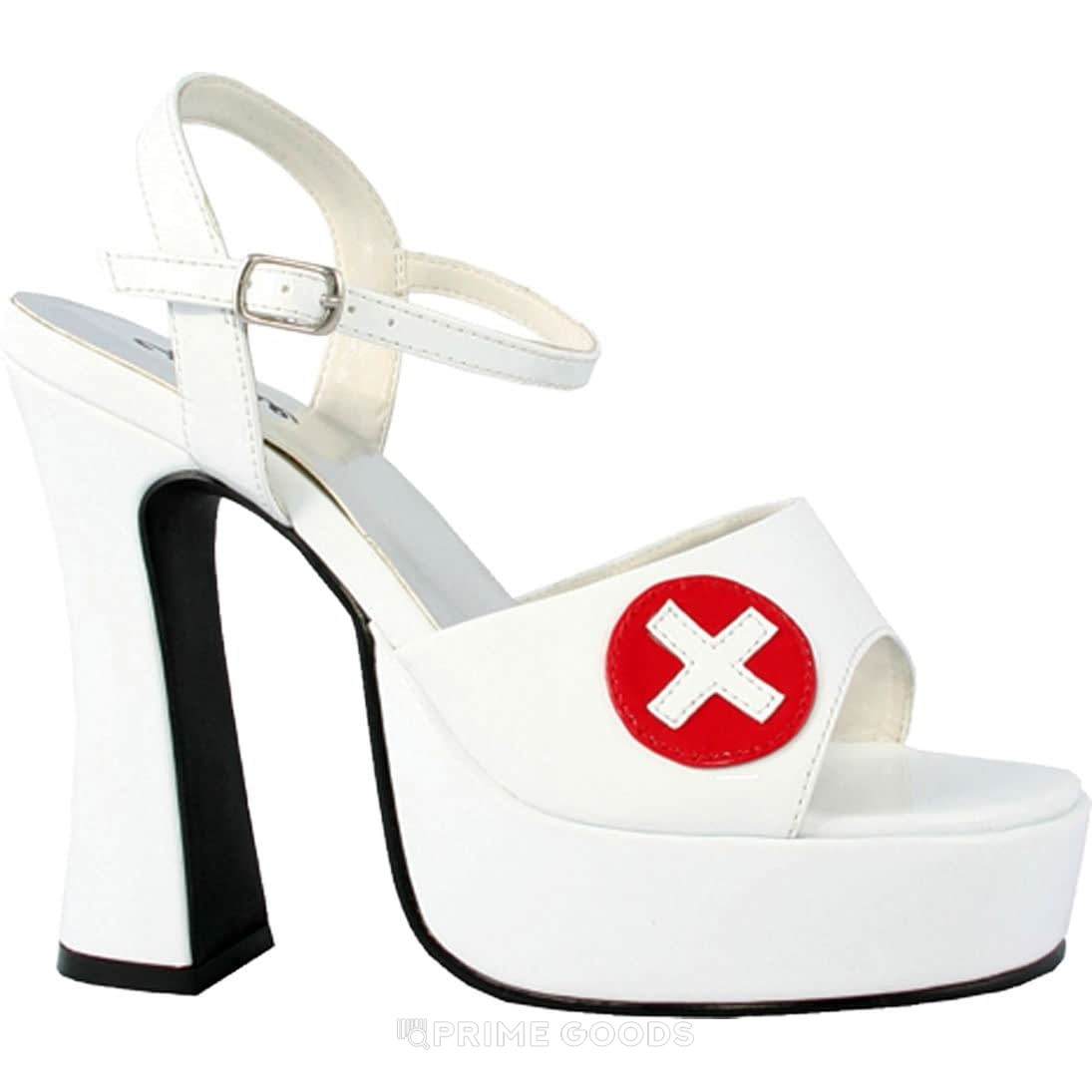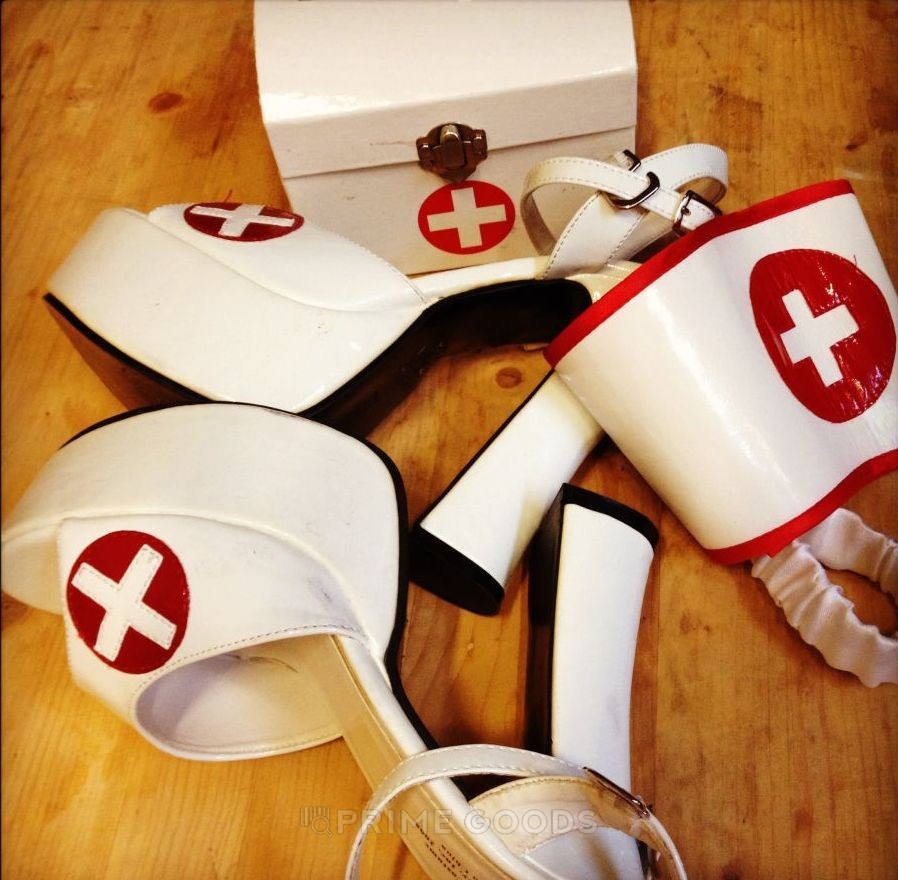 Образ медсестры это одна из главных фантазий многих мужчин. У вас есть костюм сексуальной медсестрички, но не хватает тематических туфель? Не беда, посмотрите на наши изящные туфли медсестры. Белые туфли украшены традиционной эмблемой-белый крест в красном кружке.