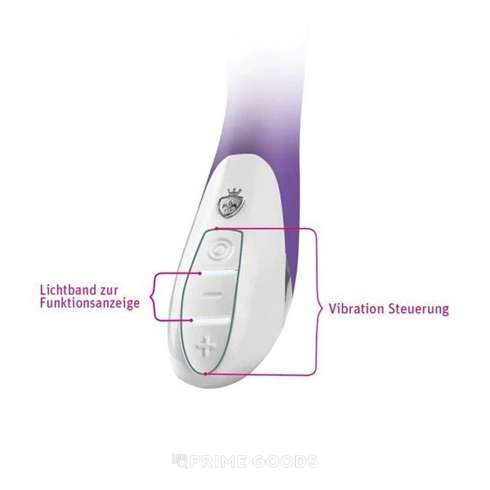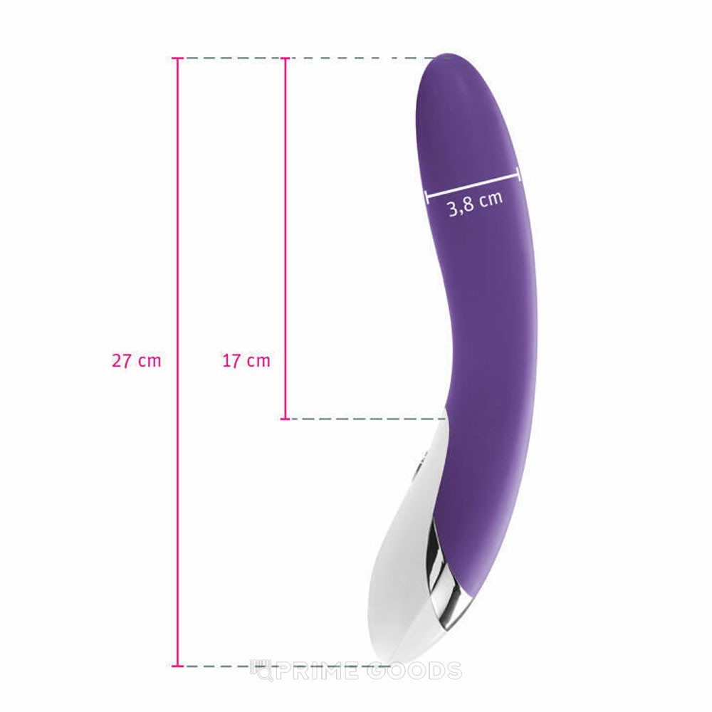Корпус выполнен из бархатистого, гипоаллергенного силикона в насыщенном фиолетовом цвете. Два мощных мотора обеспечивают 8 режимов вибрации с 5 уровнями интенсивности. Слегка изогнутый ствол обеспечивает идеальное соприкосновение с эрогенными зонами, направляя вибрацию именно туда, где она нужна больше всего.