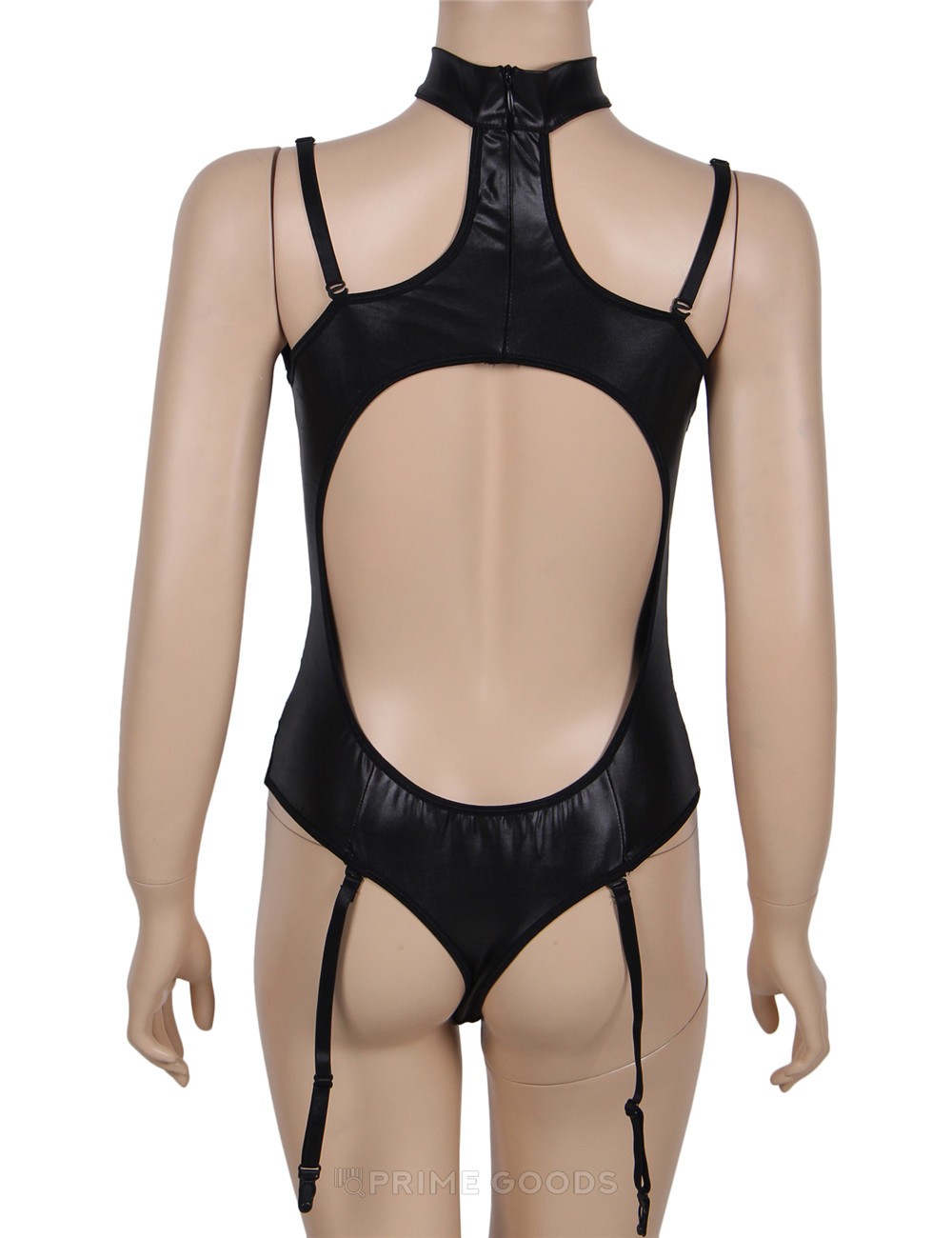 Боди виниловый Ohyeah Black Vinyl с пажиками для чулок, 3XL