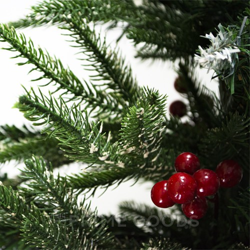 Присмотритесь к нашей красавице! Высотой - 180 сантиметров, идеально подойдет для больших помещений. Веточки с белым напылением - имитацией снежка. И яркие красные ягодки словно боярышник, разбавляют насыщенную зелень и создают особый, необычный вид. Прослужит Вам не один год и радовать собой всю семью.