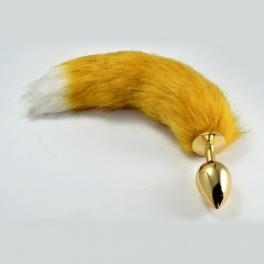 Золотой анальный плаг с хвостиком. Элитная игрушка для ролевых игр. Так же как и любой анальный плаг, данная модель стимулирует анальный проход и что немало важно, помещая данную игрушку в анус, влагалище сужается, что очень по нраву обоим партнерам. Совместим с любыми смазками.